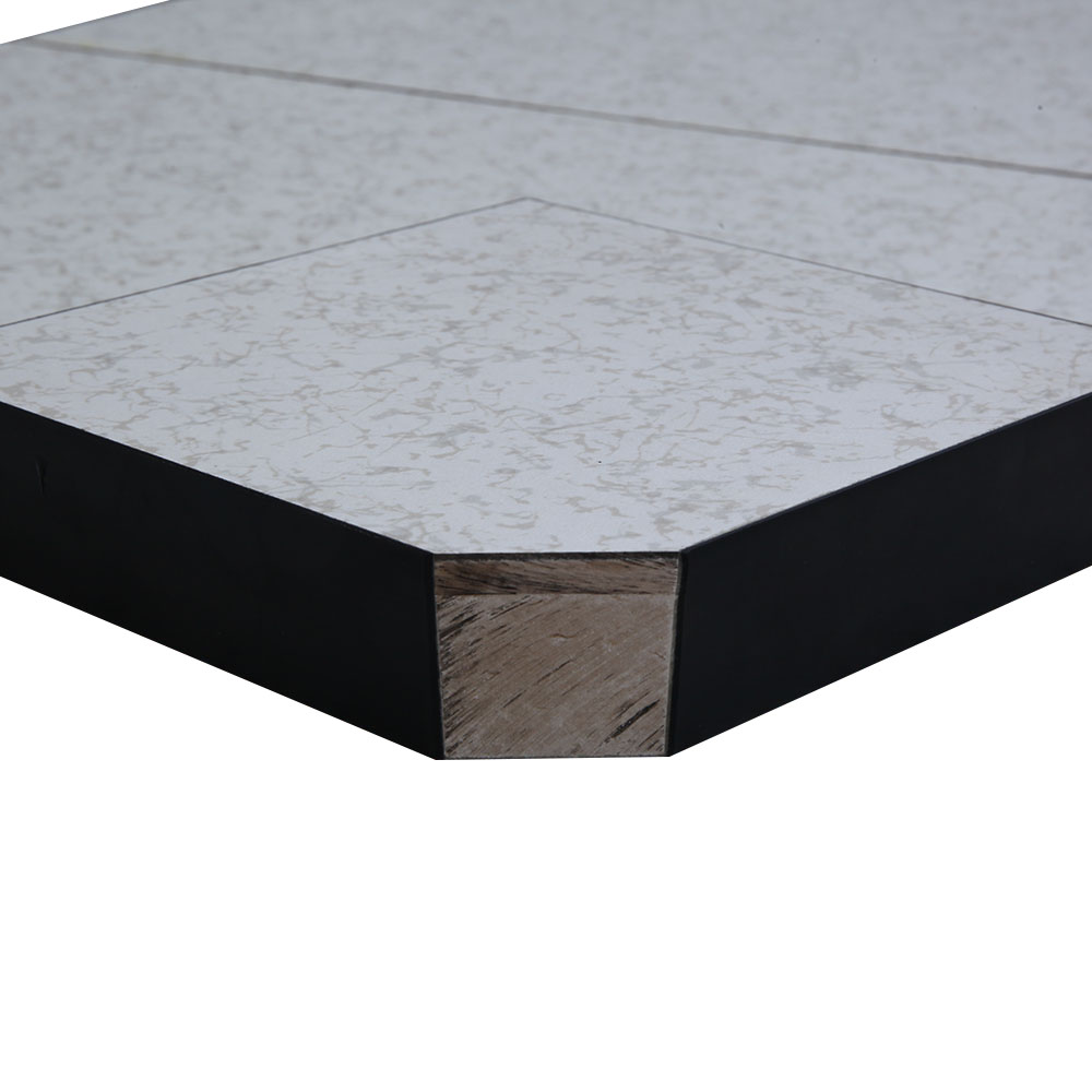硫酸鈣防靜電地板采用硫酸鈣為基材,地板上面用防火板HPL/PVC/陶瓷地板等裝飾面層,下面用鍍鋅板或壓花鋁合金粘合,四周用PVC導(dǎo)靜電封邊,地板不易受潮,不易變形,耐燃燒時(shí)間更長(zhǎng),使用壽命長(zhǎng),安裝好的地板下面形成通路,方便下面地板走線,線路檢修。地板無(wú)需除油磷化噴塑,平整度好、邊不反翹,環(huán)保、強(qiáng)度大,密封性及穩(wěn)定性好。